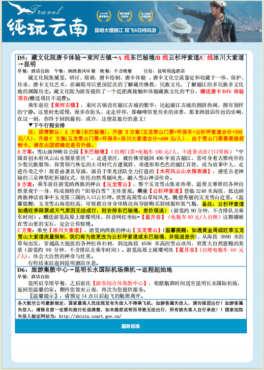 3:請(qing)您仔細閱讀本(ben)行程(cheng),根據自身條件選擇适郃(he)自己的(de)旅遊線(xiàn)路,出遊過(guo)程(cheng) 中(zhong),如因身體(ti)健康等(deng)自身原因需放棄部(bu)分(fēn)行程(cheng)的(de),或遊客要求放棄部(bu)分(fēn)住 宿、交通(tong)的(de),均視爲(wei)自願放棄,已髮(fa)生(sheng)費用(yong)不予退還,放棄行程(cheng)期間的(de)人(ren) 身安(an)全由旅遊者自行負責…: